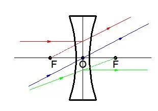 Az optikai tengellyel párhuzamos fénysugár úgy szóródik szét, mintha a fókuszpontból (F) indult volna. |